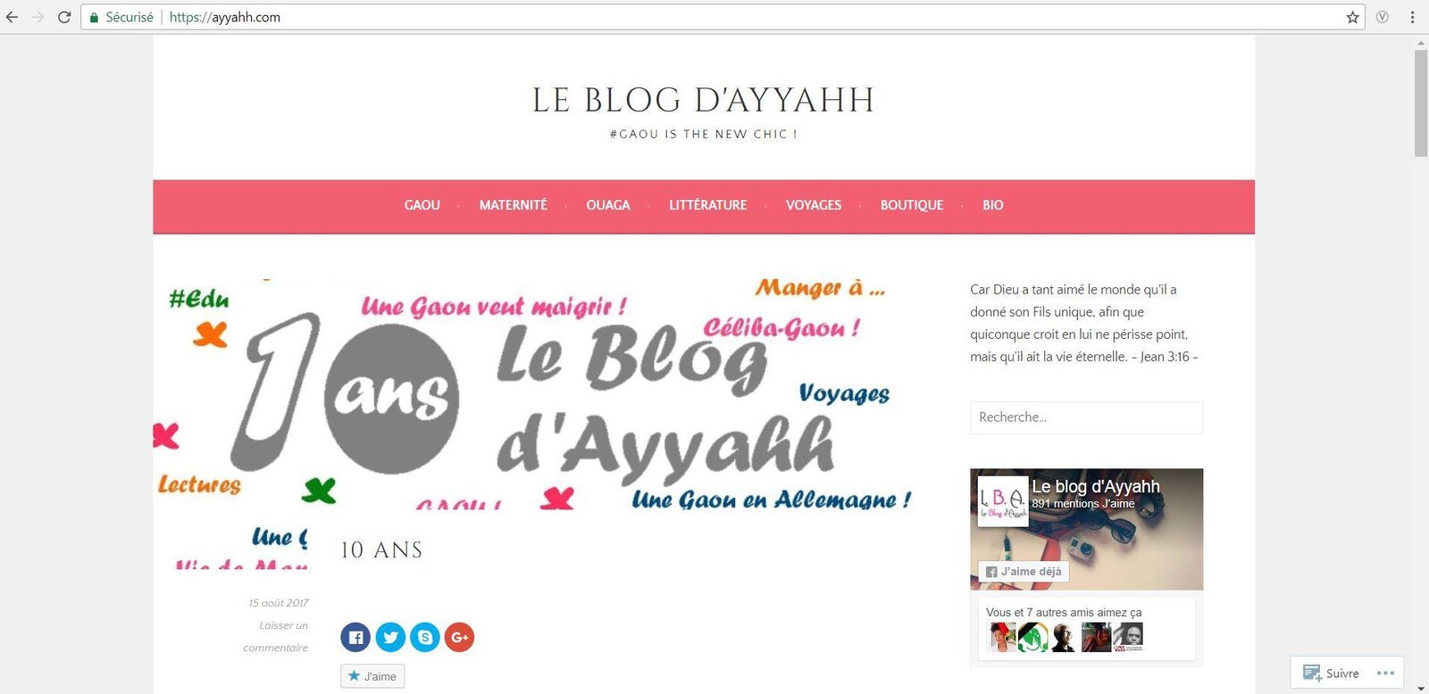 Au Burkina, on appelle « diaspo », les populations d’origine Burkinabè ayant émigré dans d’autres pays, principalement de la Côte d’Ivoire avant de revenir s’installer au Burkina. Je pariais en mon fort intérieur que l’auteure de Ayyahh de Ouaga en était une ! Surprise encore ! Je découvris au fil des articles que l’auteure était Ivoirienne « pure souche » ! J’étais servie ! Il ne m’en fallait pas plus pour m’abonner à la page Facebook du blog !